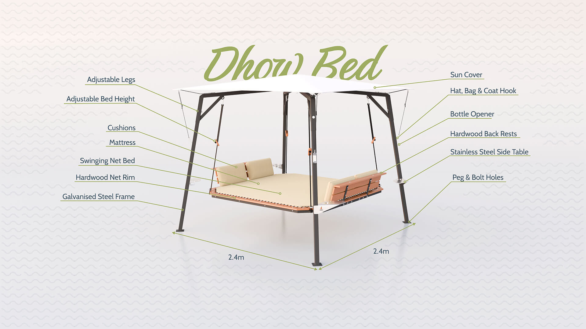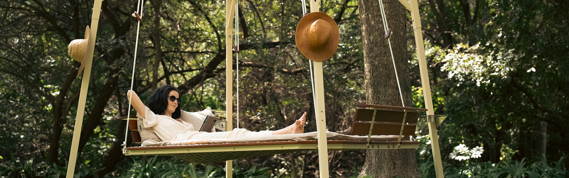 We’ve been on a quest to make the ultimate outdoor daybed. Something that is built to last in the sun and rain. Handcrafted with the elegance of a yacht. A Bali-style-net-bed that gently sways like you’re floating on the Mediterranean.